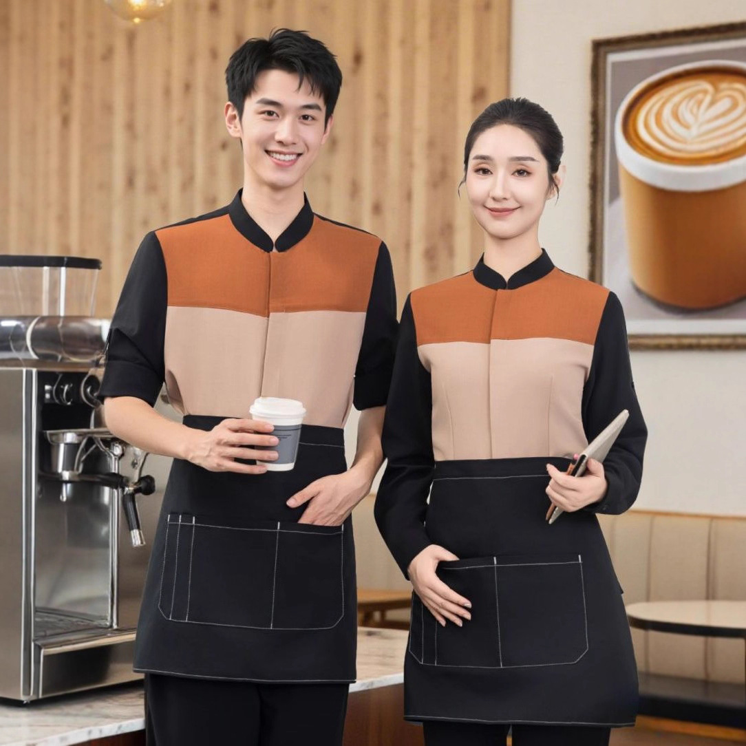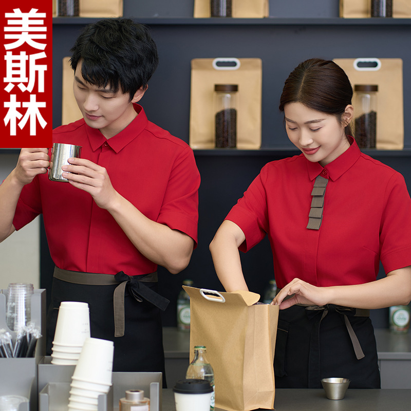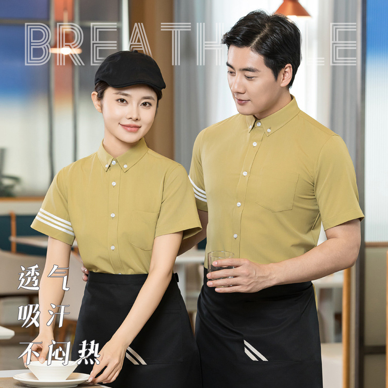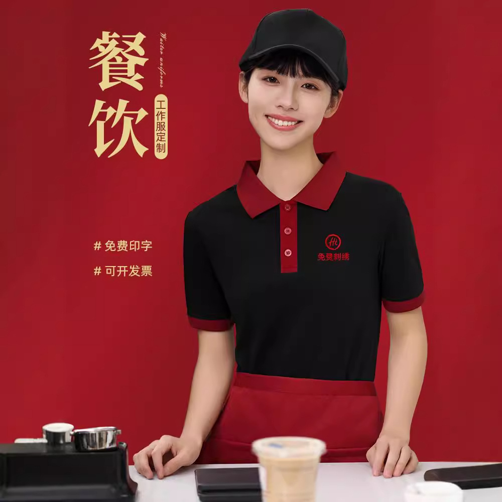 Baju kerja pelayan restoran, baju kerja pelayan restoran makanan cepat, kaus kerah lengan pendek, pakaian musim panas