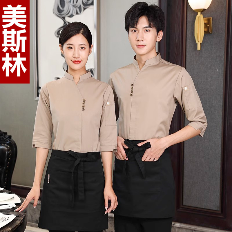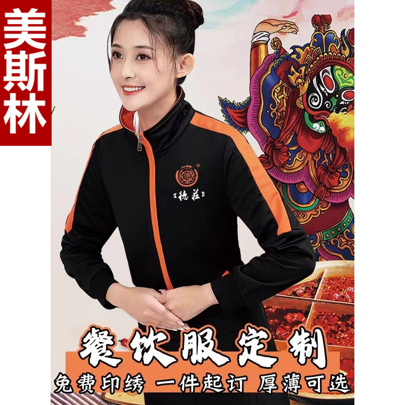 Pakaian kerja pelayan restoran katering Tiongkok, pakaian seragam musim gugur dan musim dingin, rumah teh pot panas, potongan setengah lengan, pakaian kerja khusus