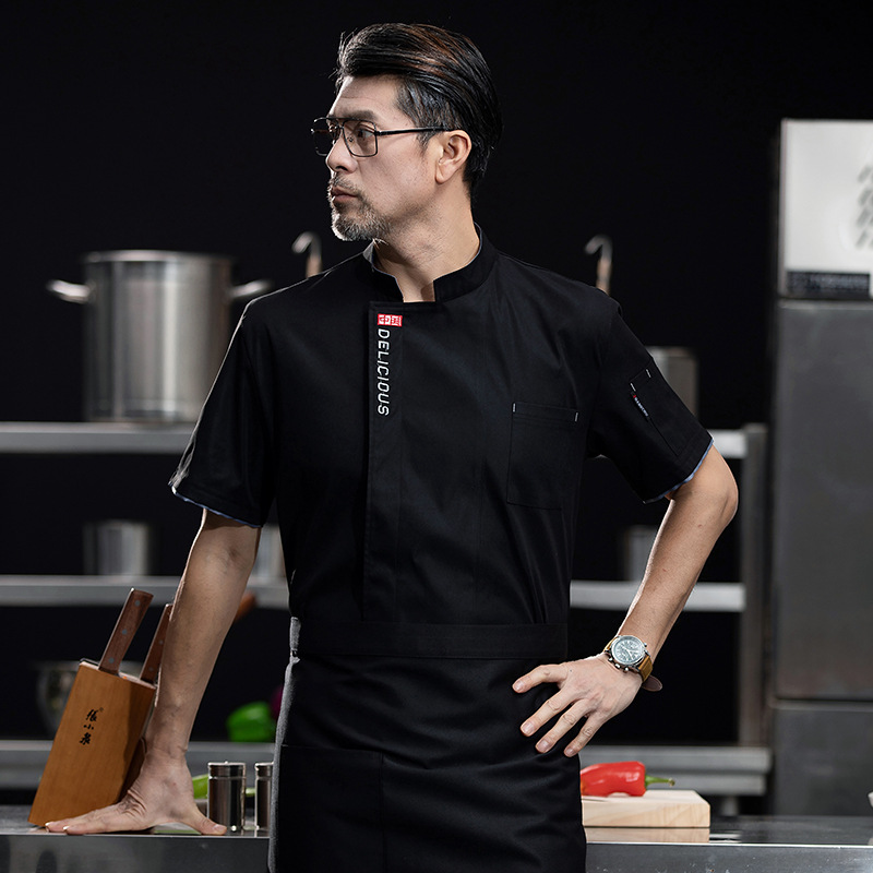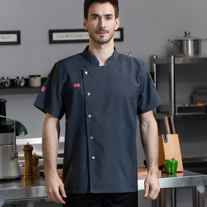 Baju koki lengan pendek, baju kerja pelayan restoran Barat lengan pendek, Toko Kue roti, baju kerja pria musim panas