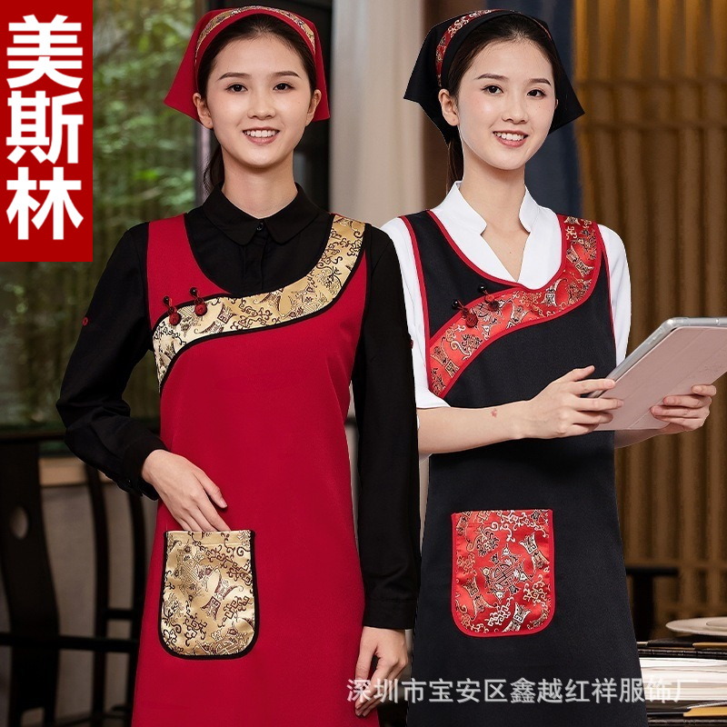 Segel pinggang restoran pelayan Cina lengan panjang pria dan wanita hot pot hotel lobi merah pakaian kerja musim gugur dan musim dingin