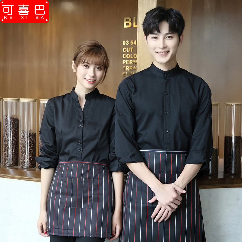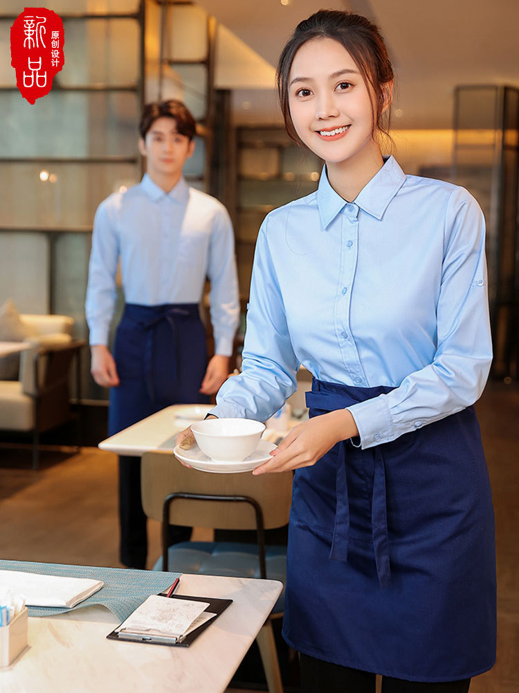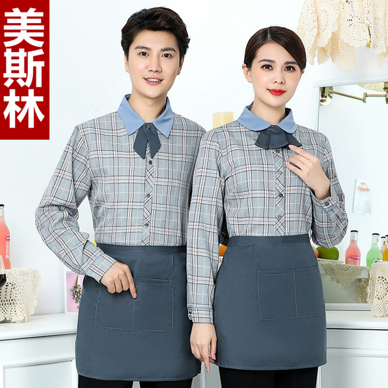 Baju kerja pelayan restoran, baju kerja pelayan restoran hotel katering lengan panjang pot panas toko teh susu baju kerja staf Musim Semi dan Musim Gugur
