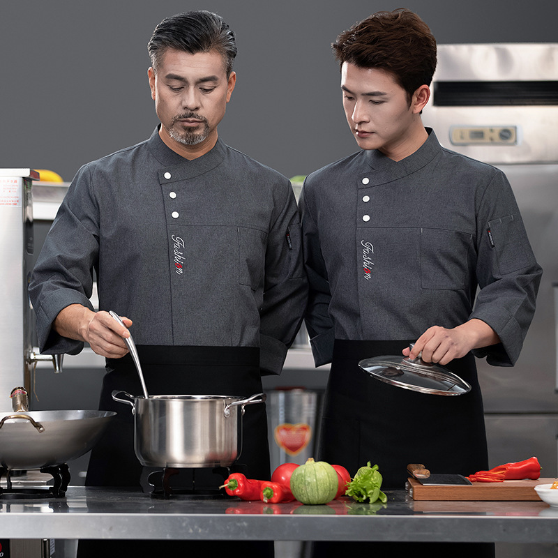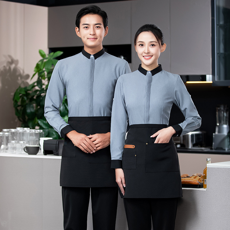 Baju kerja pelayan pria wanita, lengan panjang restoran Barat katering pot panas restoran meja depan hotel Restoran musim gugur dan musim dingin