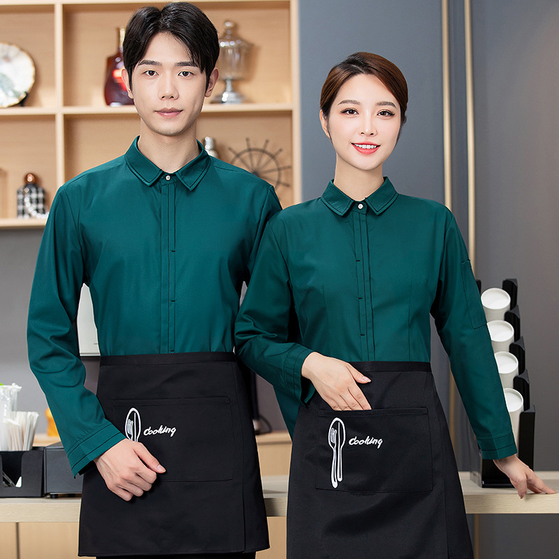 Baju kerja restoran gaya Barat lengan panjang wanita makan steak kedai kopi toko kue hotel pelayan kemeja musim gugur pria