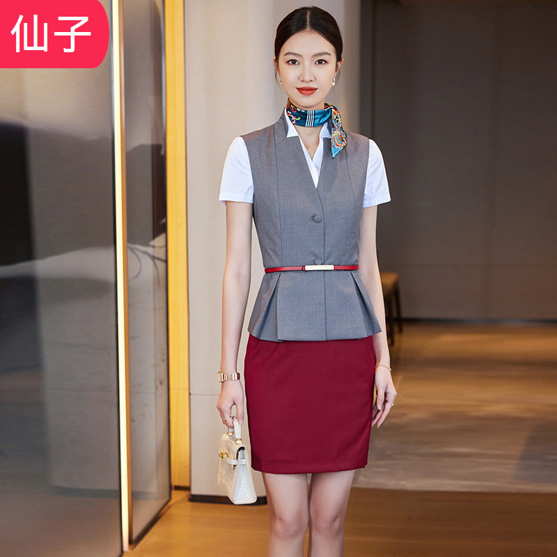 Setelan rompi rok wanita setelan profesional berkecepatan tinggi rel hotel meja depan KTV pelayan pakaian kerja perempuan maskapai Selatan seragam pramugari