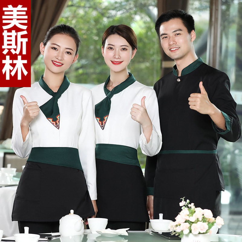 Hotel restoran baju kerja musim gugur dan musim dingin pakaian gaya Cina lengan panjang wanita hot pot restoran pelayan katering staf restoran setelan
