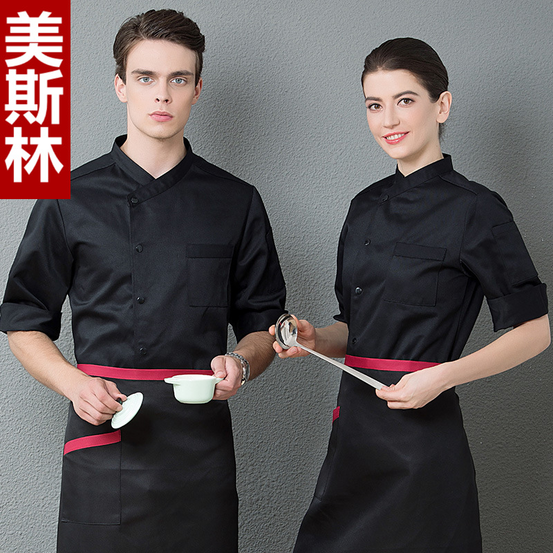 Pakaian kerja restoran pria dan wanita, kelas atas pot panas restoran pelayan pakaian kerja lengan pendek polo kemeja pakaian kerja seragam kaus rantai katering