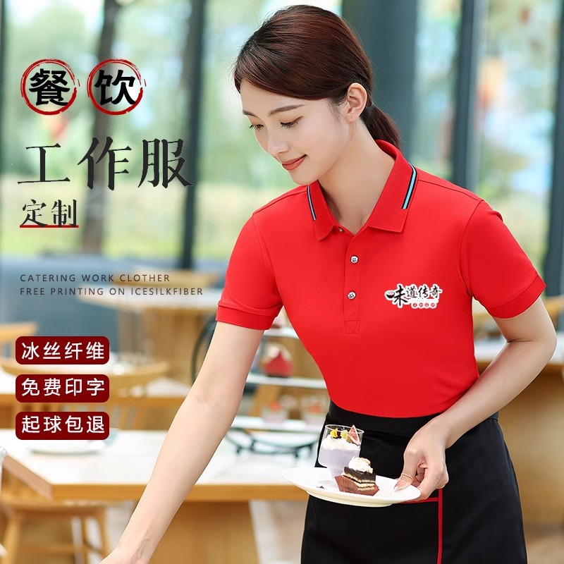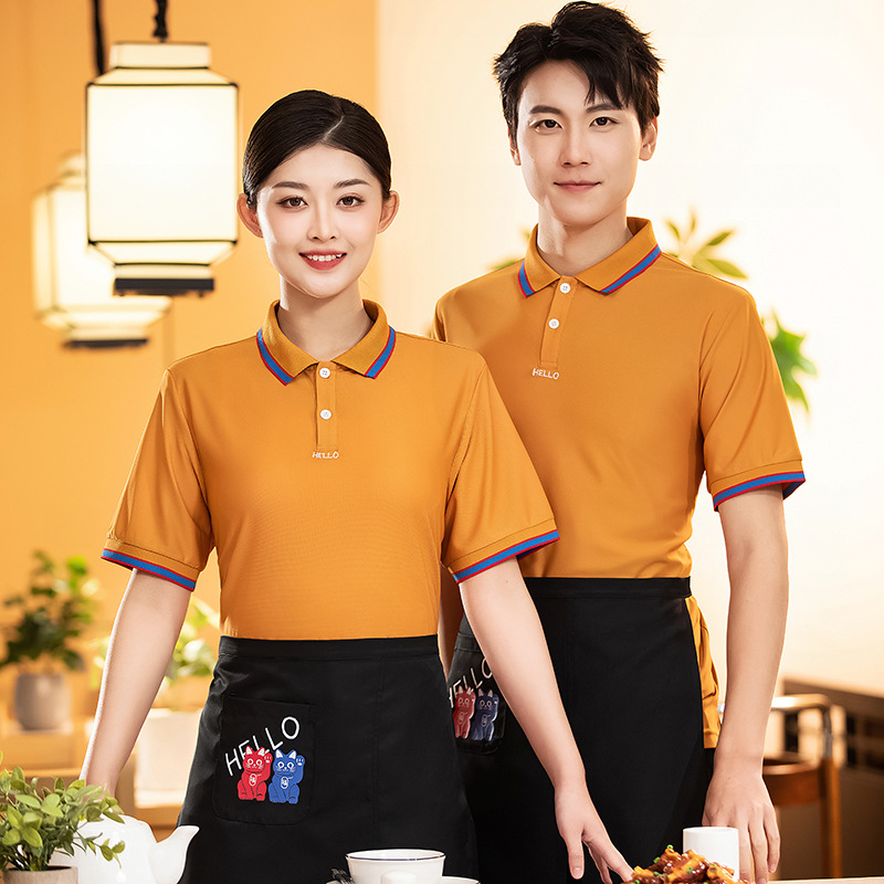 Pakaian Kerja Pelayan Restoran Hot Pot T-shirt Kustom Makanan Minuman Barbekyu Hotel Musim Panas Lengan Pendek Kemeja POLO Pakaian Kerja