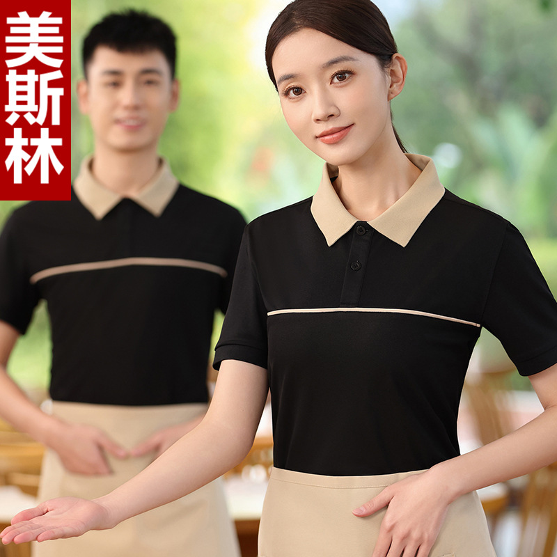 Baju kerja pelayan katering T-shirt lengan pendek musim panas kustom restoran hotel restoran baju staf supermarket bernapas
