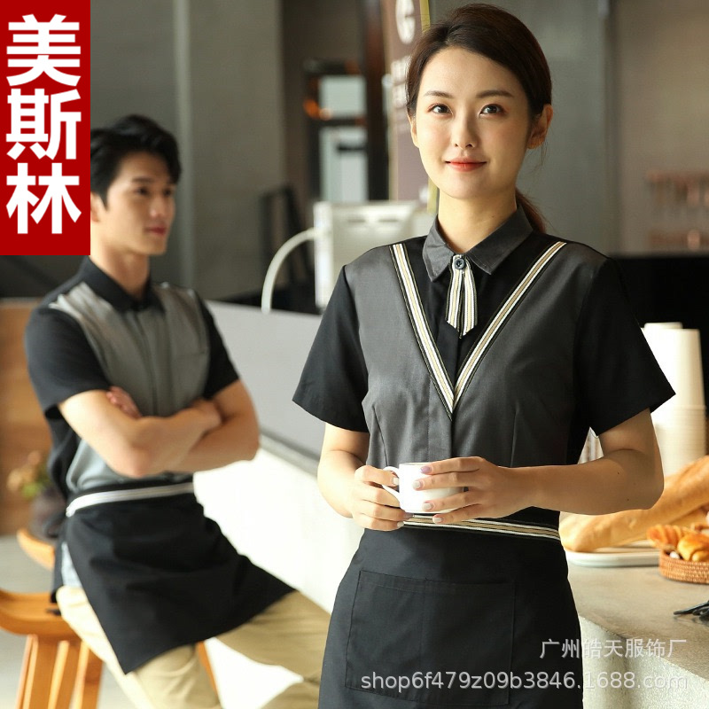 Pelayan baju kerja lengan pendek, celemek rompi musim panas, restoran, teh susu, barbekyu, katering cepat, lengan pendek, baju kerja pelayan