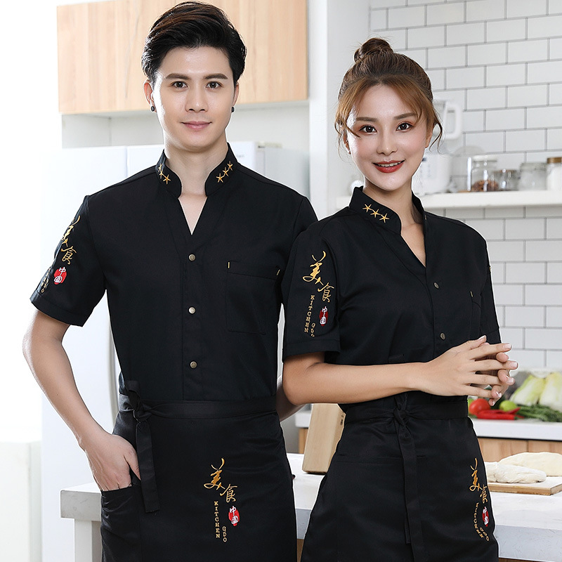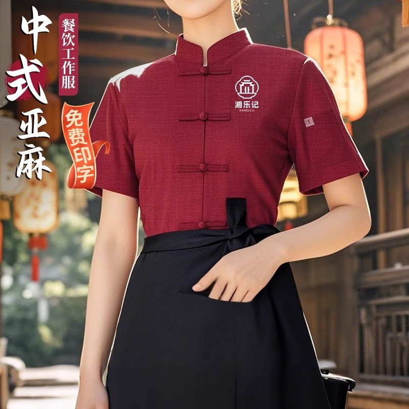 Pakaian Kerja Pelayan Katering Gaya Tiongkok Pakaian Kerja Musim Panas Kustom untuk Restoran Linen Kelas Atas Gaya Tiongkok Lengan Pendek