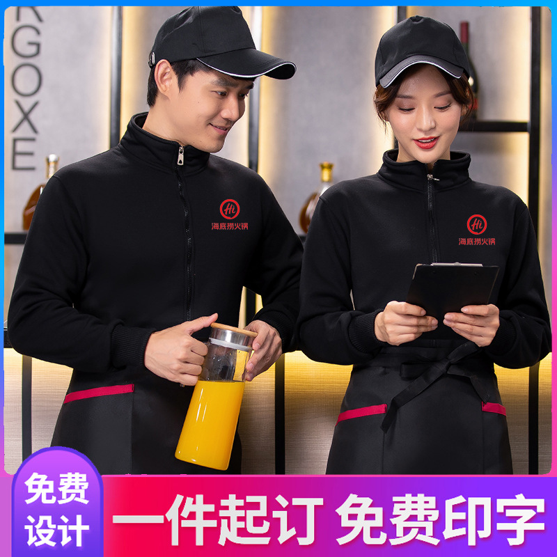 Sweater katering overall disesuaikan lengan panjang musim gugur dan musim dingin fleece-lined supermarket barbekyu pot panas toko teh susu pelayan mantel
