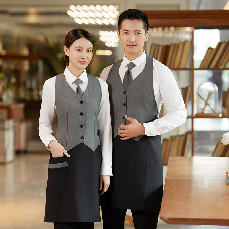 Toko teh susu prasmanan kopi Barat makan restoran bar restoran rompi panjang celemek pelayan pakaian kerja