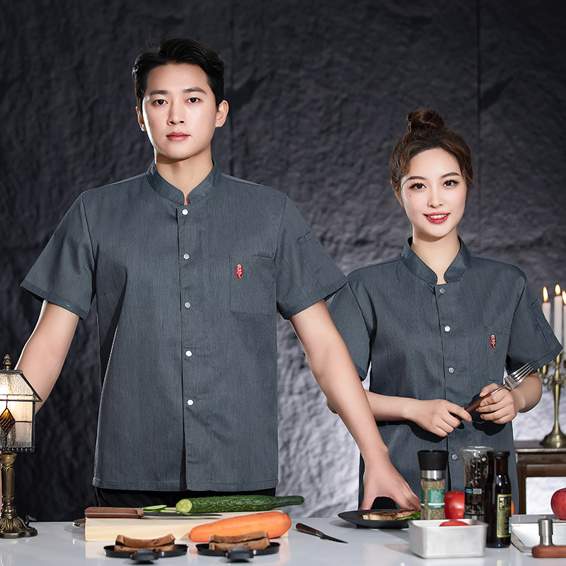 Baju kerja koki pria lengan pendek, baju pelayan wanita, baju koki dapur, restoran Barat, lengan pendek, baju koki musim panas