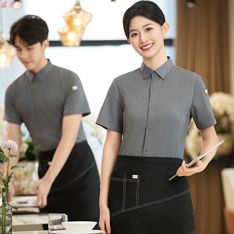 Baju kerja pelayan Hotel Wanita lengan pendek restoran cina pot panas restoran katering pesta makan rumah teh aula depan pakaian musim panas