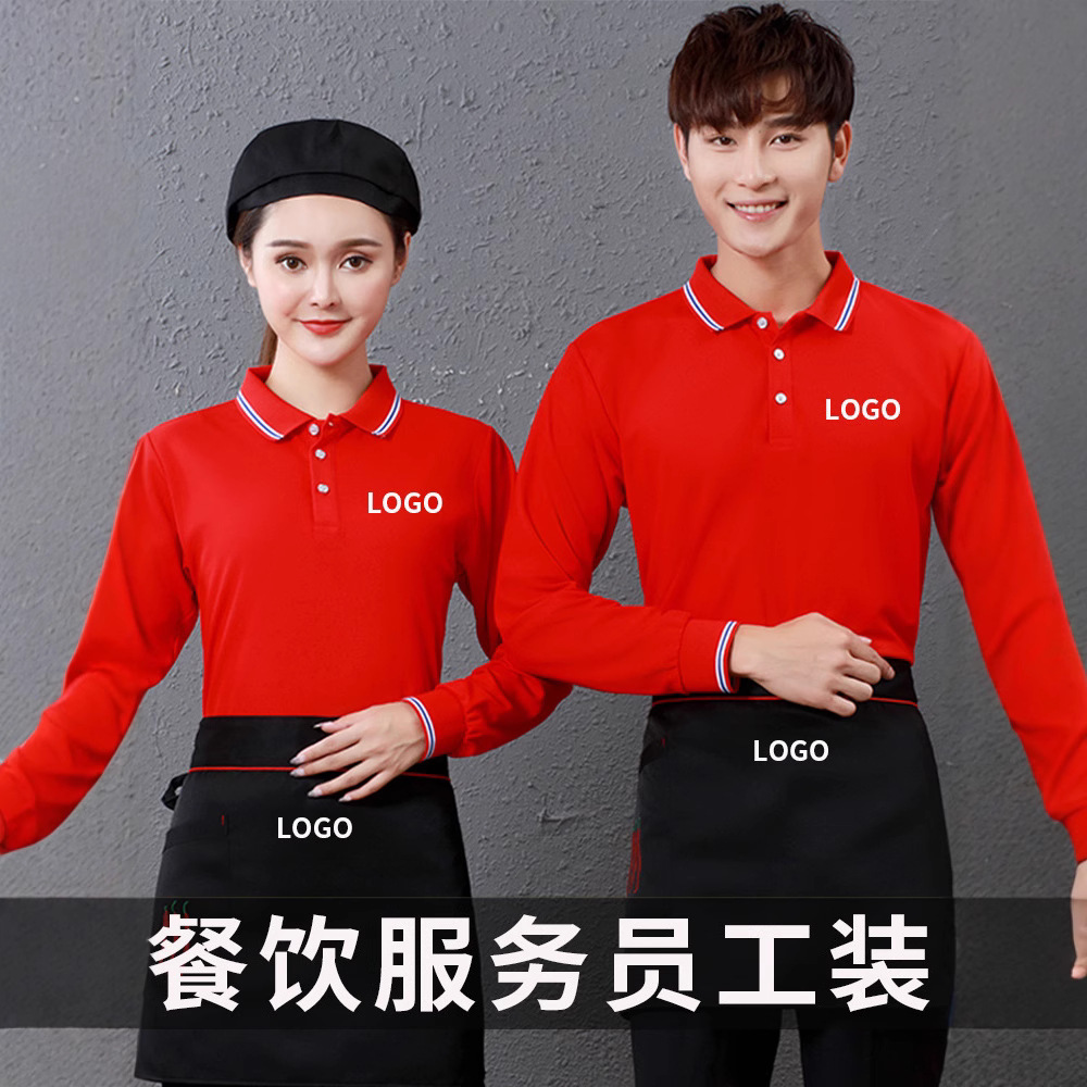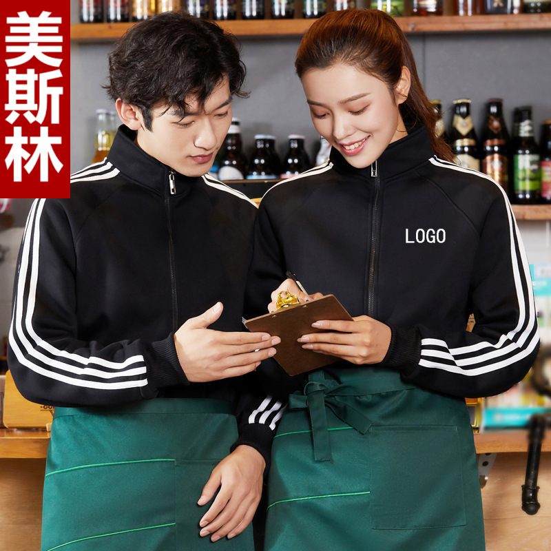 Pelayan baju kerja lengan panjang musim gugur dan musim dingin grosir teh susu cepat makanan restoran pot panas restoran restoran peralatan katering sweater cetak