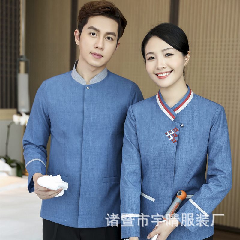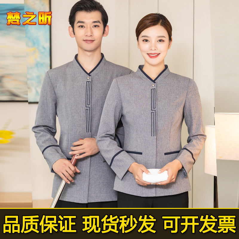 Pakaian kerja pembersih properti untuk wanita, pakaian pembersih kerja hotel lengan panjang musim gugur dan musim dingin untuk pria dan wanita