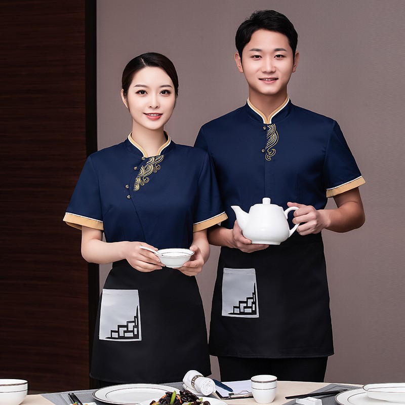 Fanzhixin baju kerja pelayan wanita, lengan pendek hotel katering rumah teh restoran cina baju staf kerja pot panas restoran musim panas
