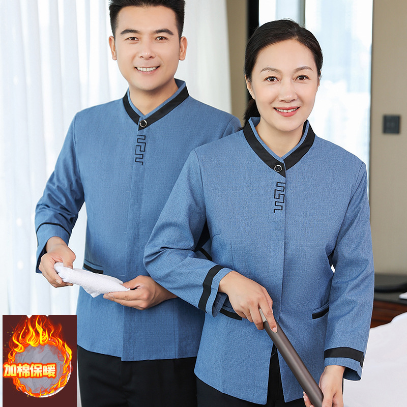 Pakaian kerja pembersih lengan panjang wanita hotel lantai kamar bibi layanan staf departemen penjualan musim gugur dan musim dingin setelan