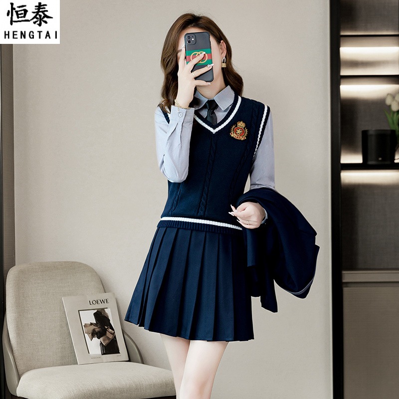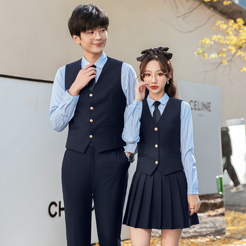 Setelan rompi gaya preppy elegan wanita, seragam jk slim fit rompi pendek asisten mengajar bar KTV pelayan pakaian kerja