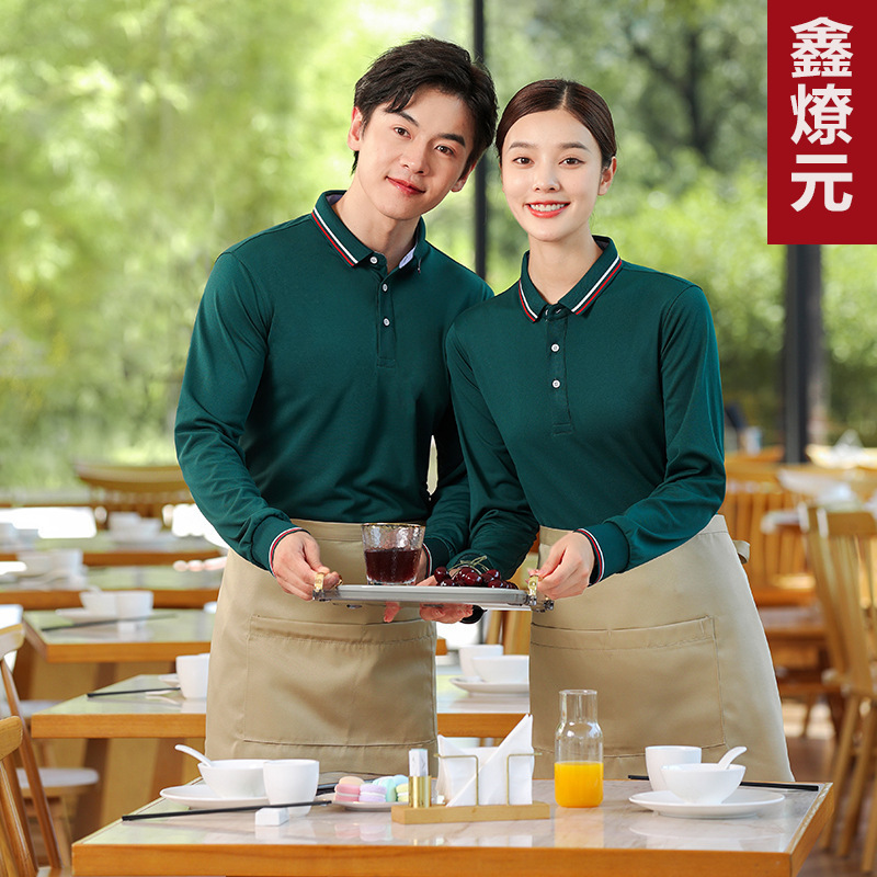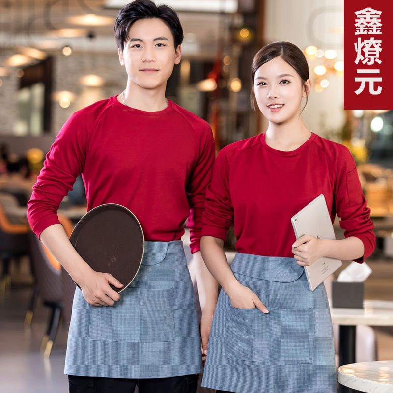Baju kerja pelayan katering baru, kaus lengan panjang restoran restoran kantin barbekyu pot panas restoran supermarket musim gugur dan musim dingin