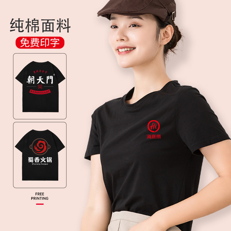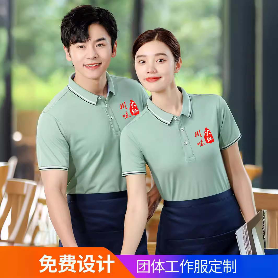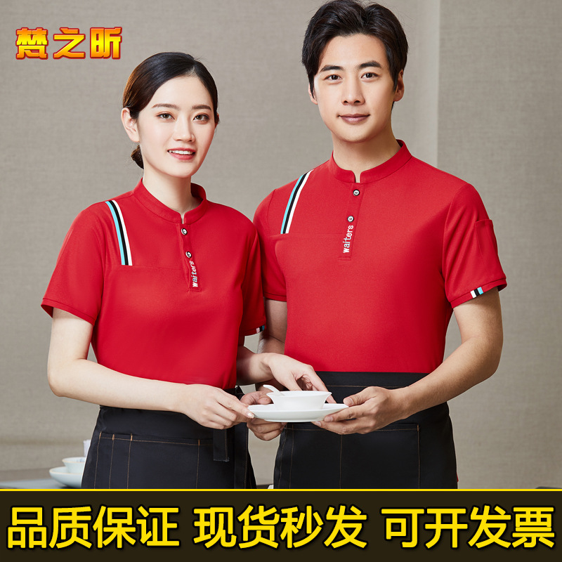 Restoran pelayan pakaian kerja T-shirt lengan pendek hotel hot pot barbekyu toko baju kerja LOGO musim panas