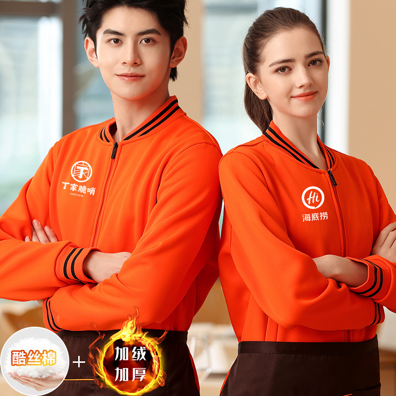 Sweater katering overall, lengan panjang hot pot pelayan musim gugur dan musim dingin, seragam bisbol membuat barbekyu lapisan bulu tebal
