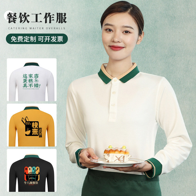 Pakaian kerja kaus makan musim gugur dan musim dingin pelayan pria dan wanita lengan panjang hotel restoran minuman teh susu