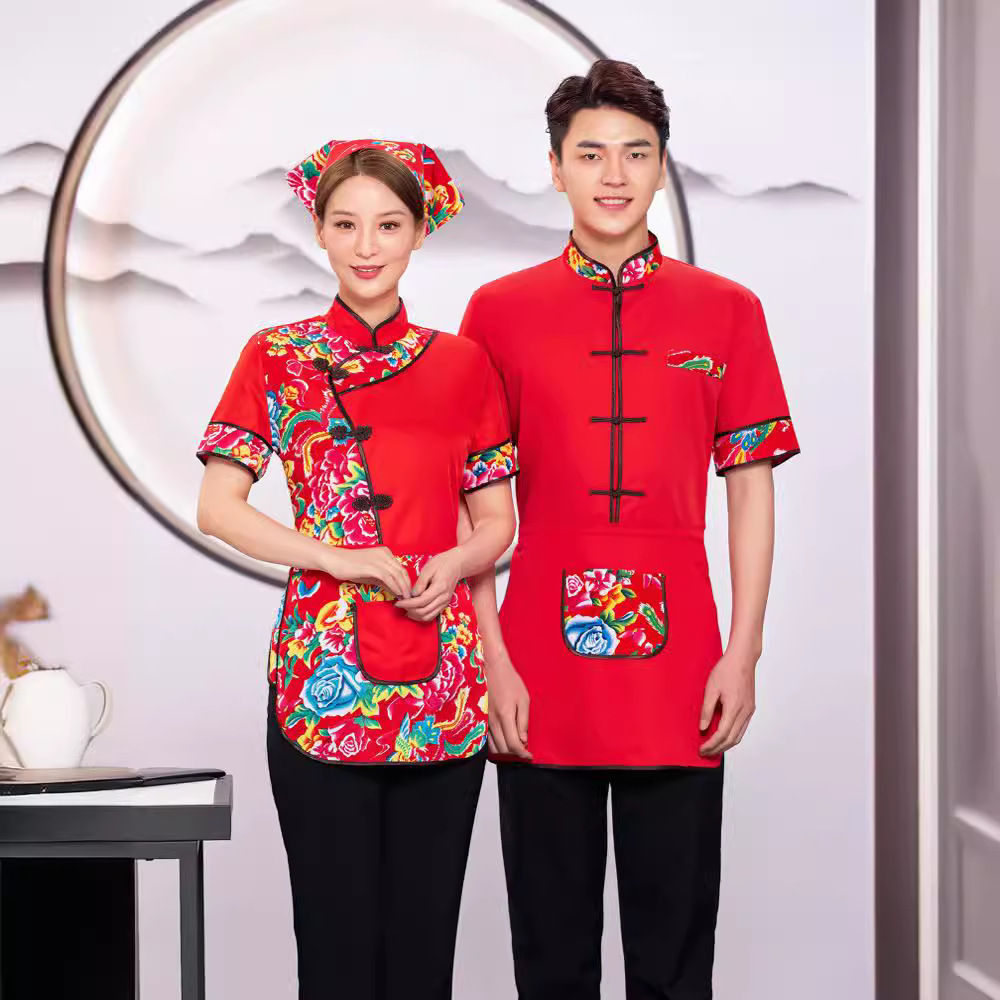 Pelayan Hotel pakaian kerja restoran musim panas wanita restoran makan hot pot restoran rumah pertanian kain bunga besar timur laut lengan pendek