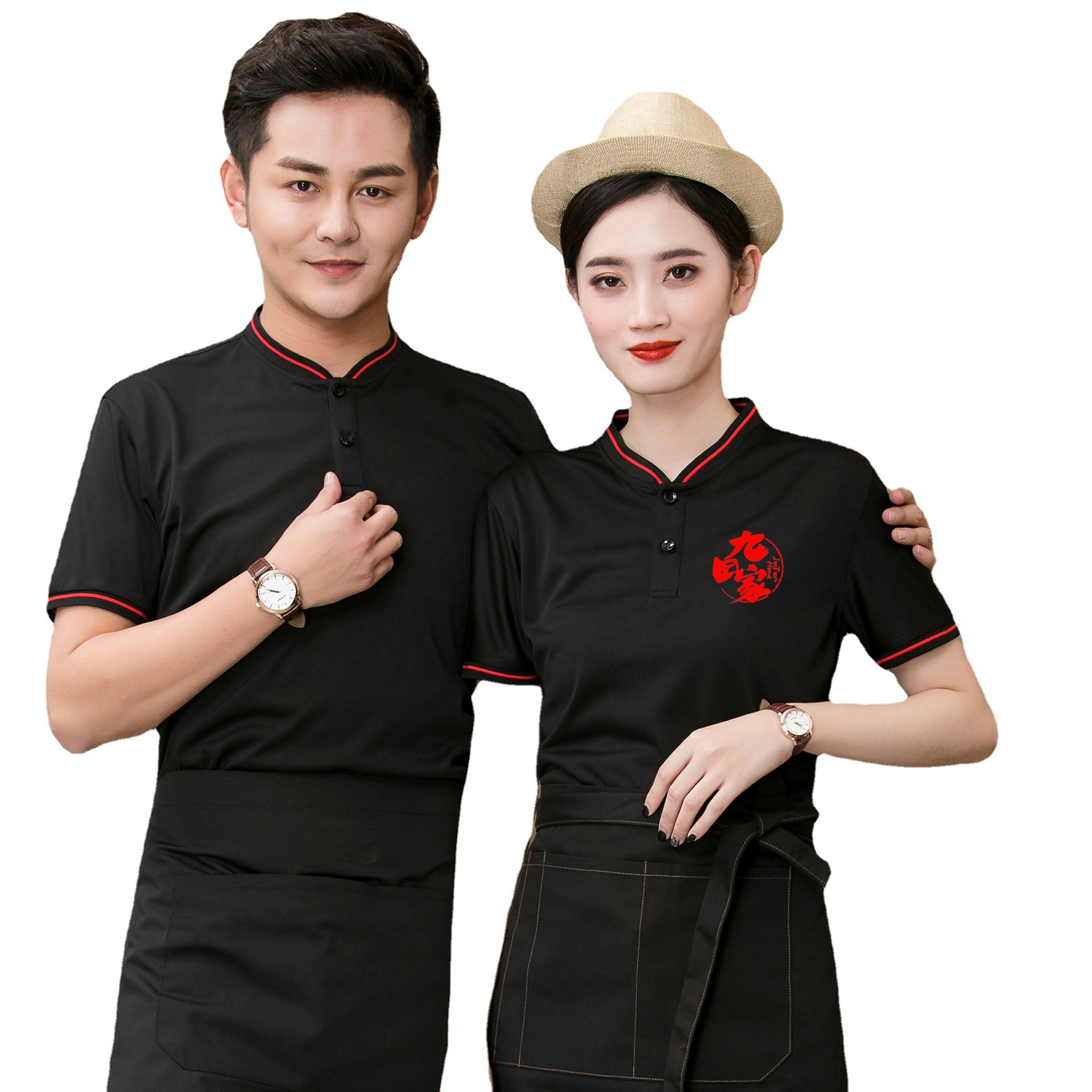 Baju Restoran wanita lengan pendek, kaus Restoran Barbekyu, pelayan katering, baju kerja, lengan pendek, kerah, bermotif logo bordir, musim panas