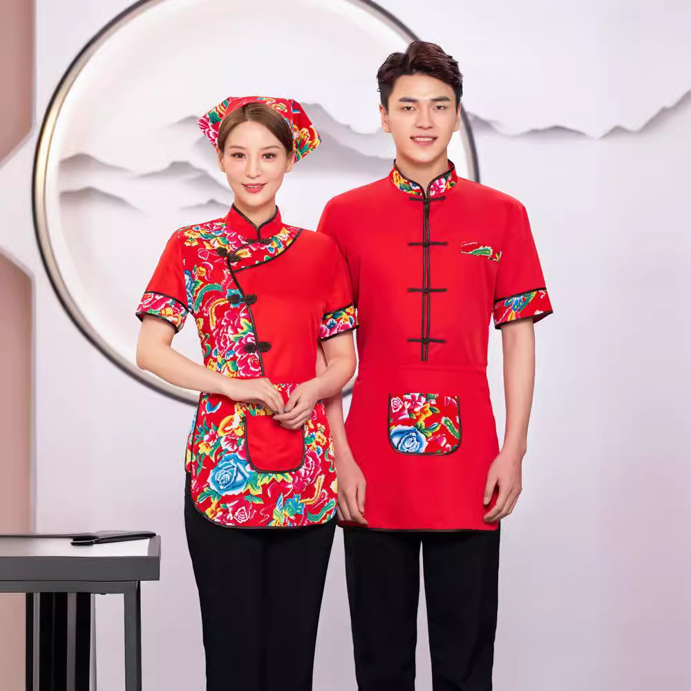 Pelayan Hotel pakaian kerja restoran musim panas wanita restoran makan hot pot restoran rumah pertanian kain bunga besar timur laut lengan pendek