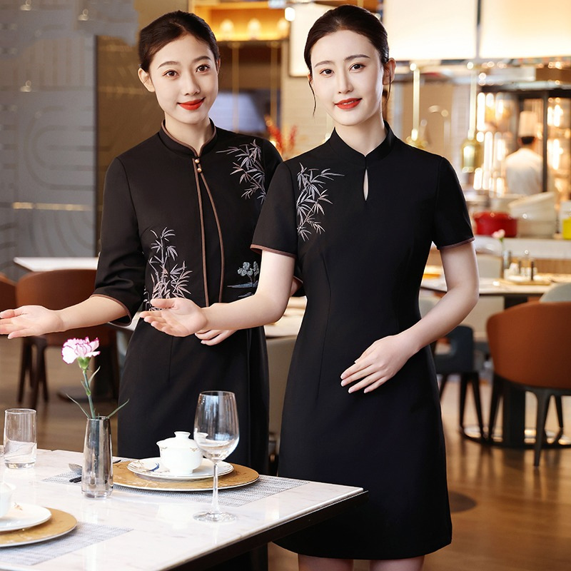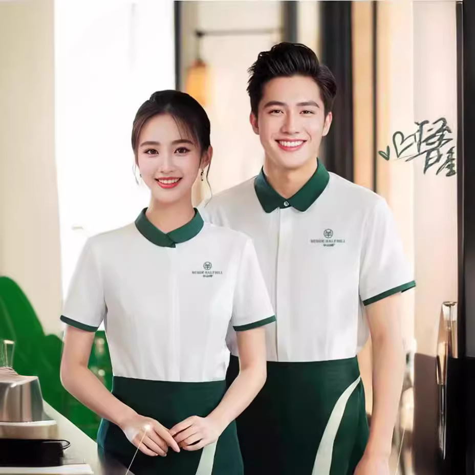 Pakaian kerja katering wanita, baju kerja musim panas pelayan pengiriman makanan restoran pot panas teh Cina hotel wanita lengan pendek