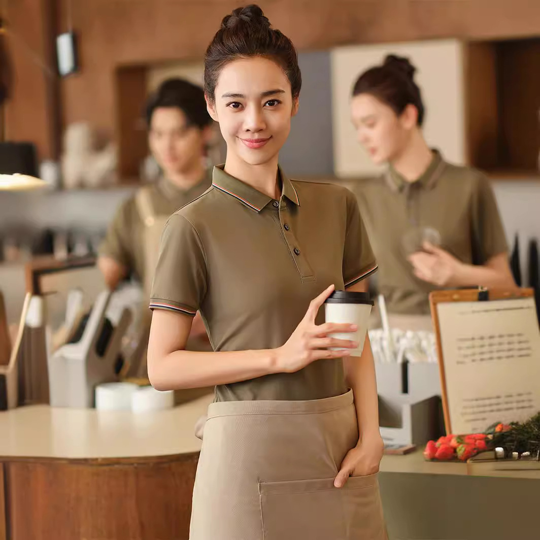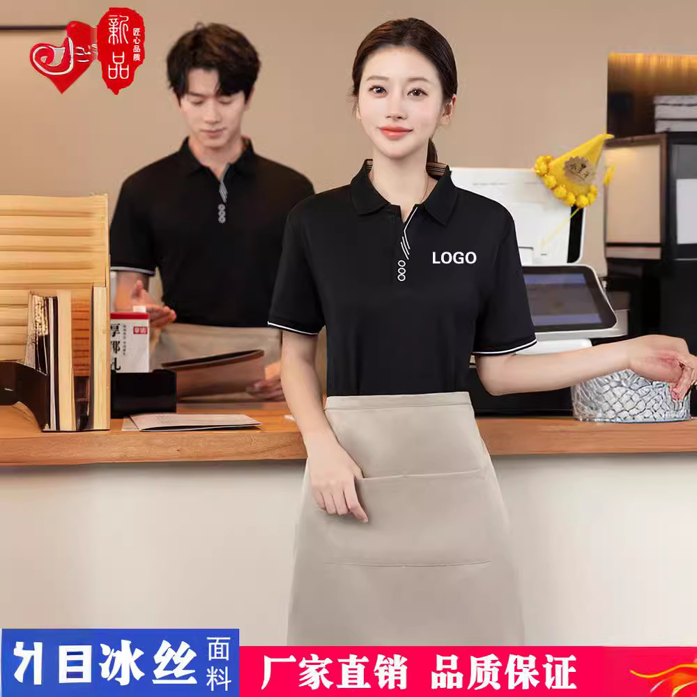 Pakaian kerja pelayan restoran Barat pakaian kerja wanita lengan pendek catering hotel teh susu kopi makanan cepat saji kaus musim panas kustomisasi