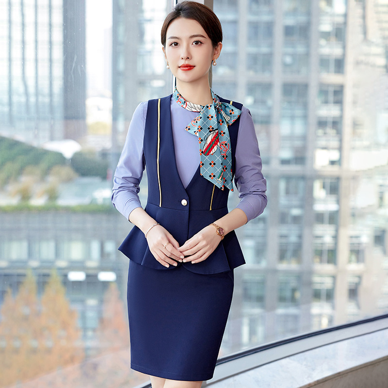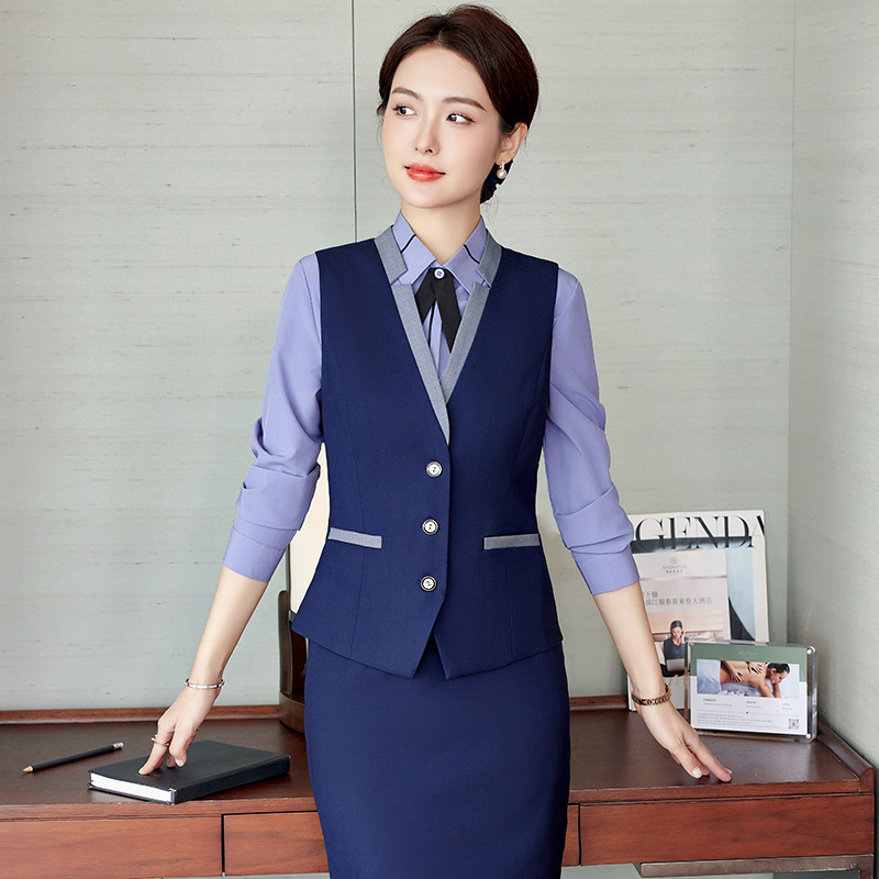 Setelan rompi profesional setelan baju kerja pelayan meja depan hotel meja kasir musim panas seragam pramugari