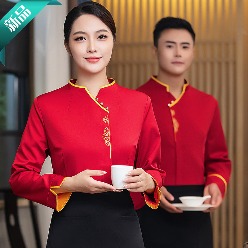 Katering restoran hot pot pelayan pakaian kerja wanita, lengan panjang hotel restoran cina rumah teh setelan seragam musim gugur dan musim dingin