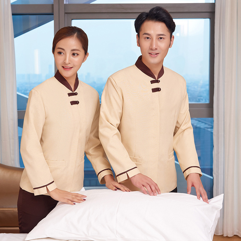 Pakaian seragam restoran Cina, pakaian kerja pelayan katering hotel kelas atas pria dan wanita Musim Semi dan Gugur
