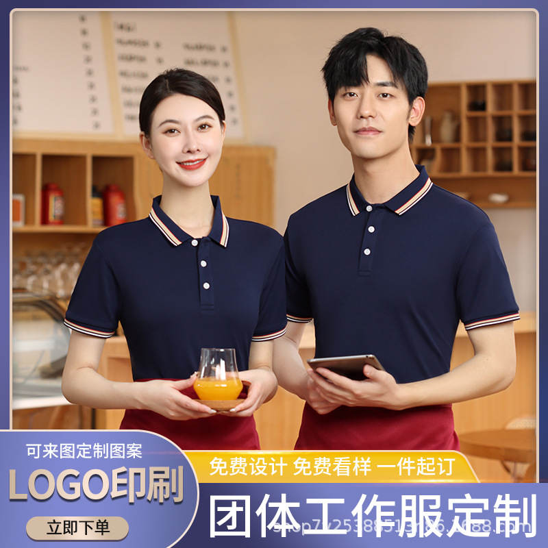 Lapel kaus lengan pendek supermarket, pakaian kerja cetakan tim hotel katering pot panas restoran pelayan musim panas