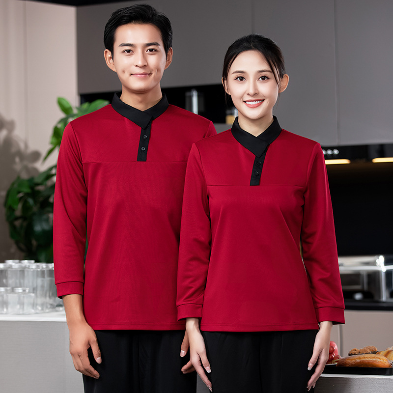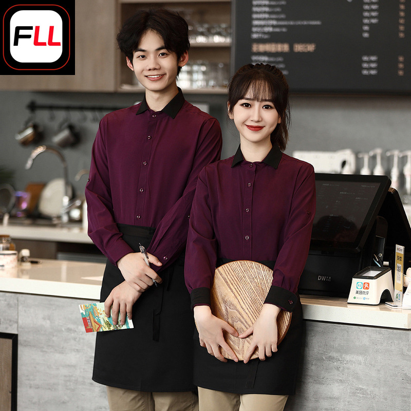 Kaus lengan panjang pelayan katering, baju kerja pelayan, kaus lengan panjang, restoran, hotel, restoran Barat, toko teh susu, pakaian kerja, warna yang cocok