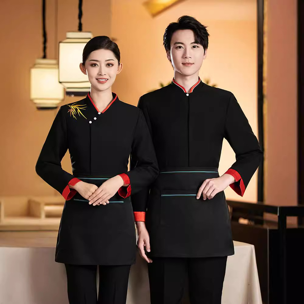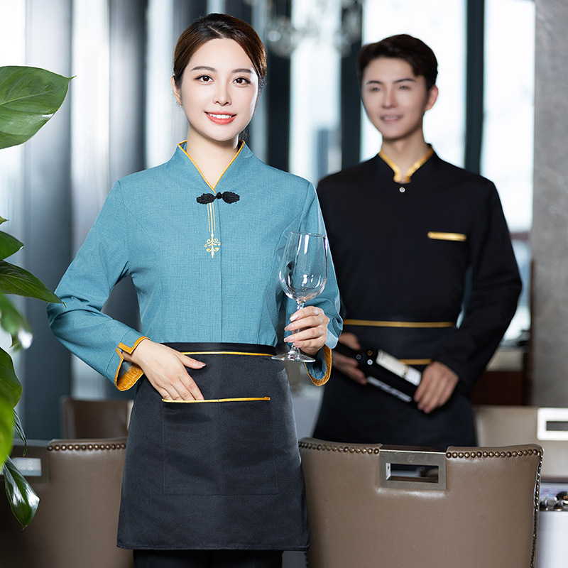 Baju kerja pelayan hotel musim gugur dan musim dingin, pakaian kurir rumah teh restoran hunan pot panas katering kelas atas lengan panjang