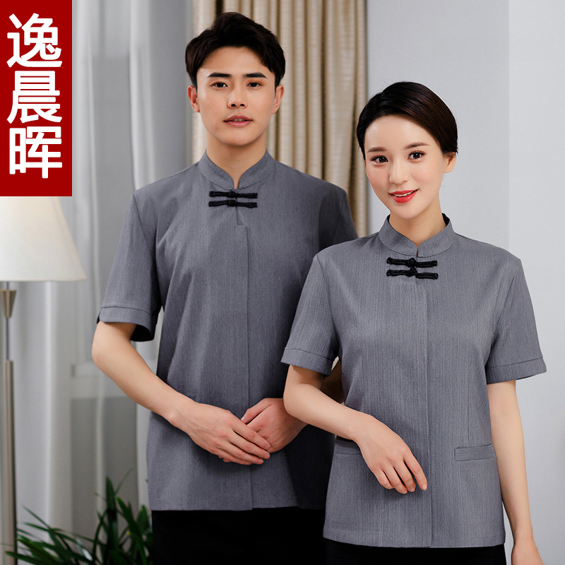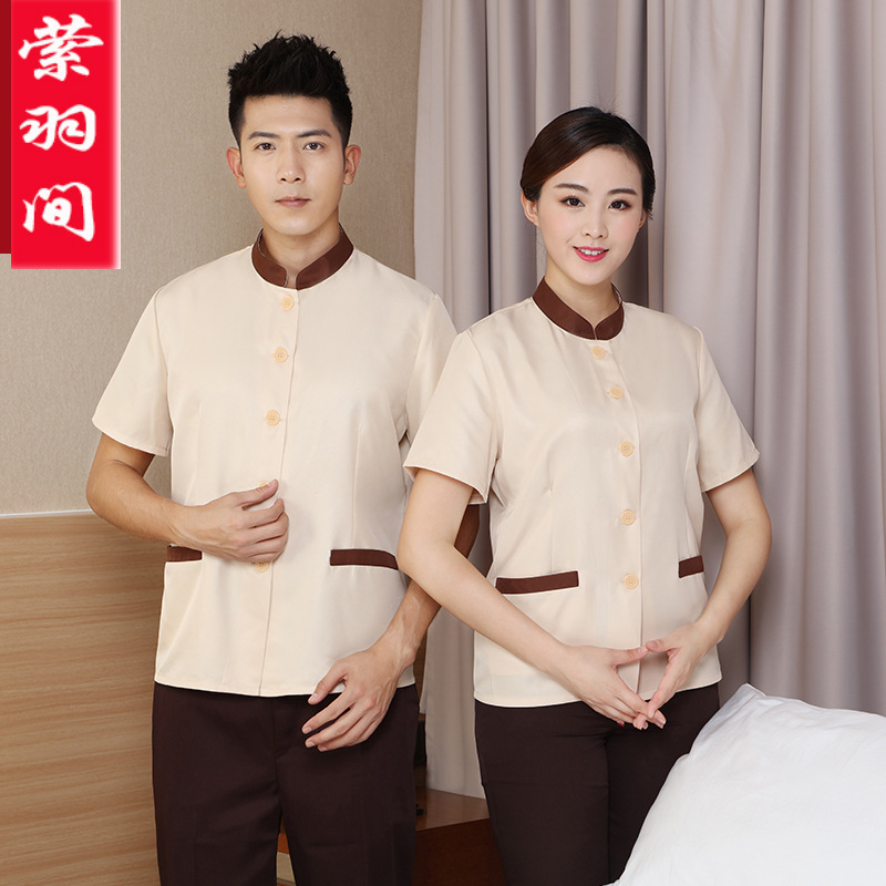 Pakaian pembersih lengan pendek, pakaian kerja petugas hotel musim panas, properti hotel wanita, pembersih lantai, pakaian PA pria