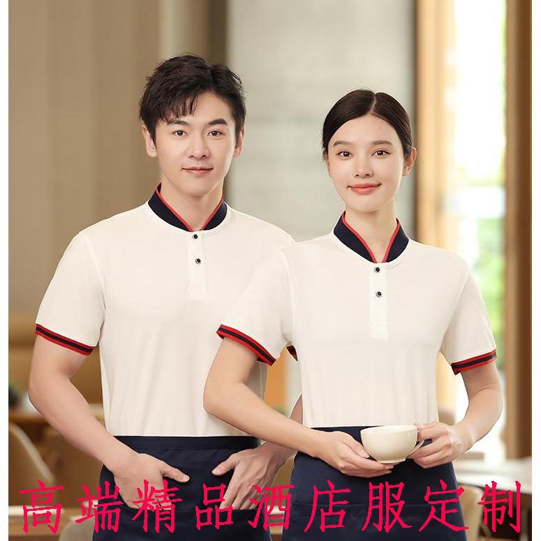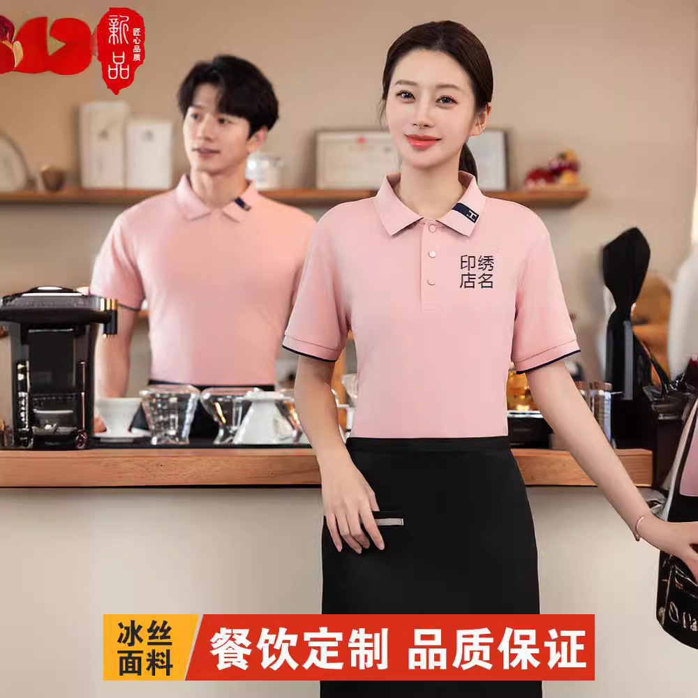 Katering pelayan musim panas lengan pendek pakaian kerja restoran barbekyu restoran hot pot restoran pria dan wanita T-shirt perkakas dicetak logo