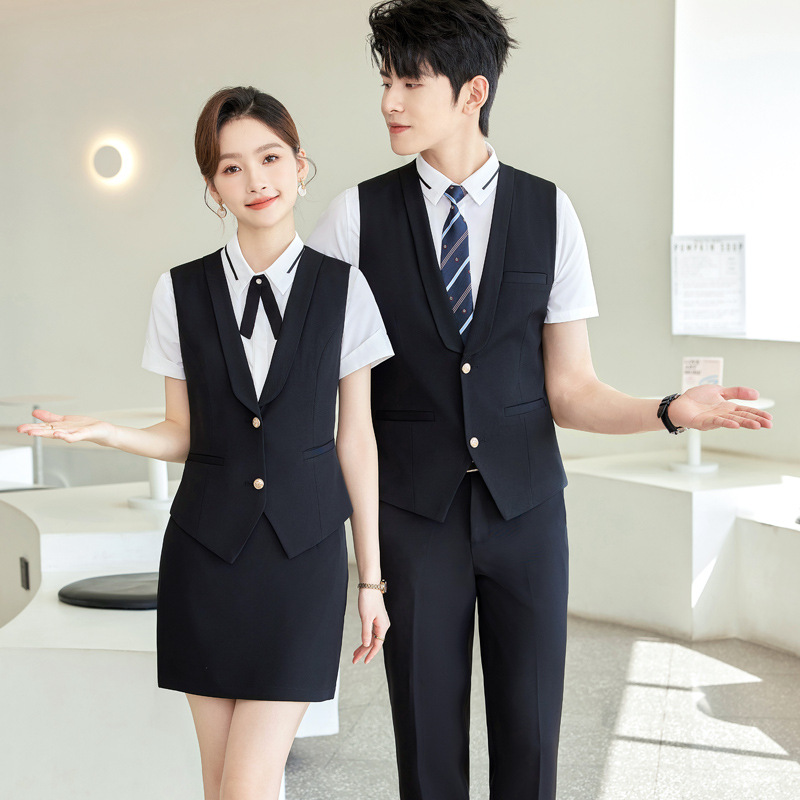 Pakaian kerja pelayan gaya kuliah setelan pria dan wanita rompi profesional rok berlipat bar KTV biliar mengajar asisten pakaian kerja