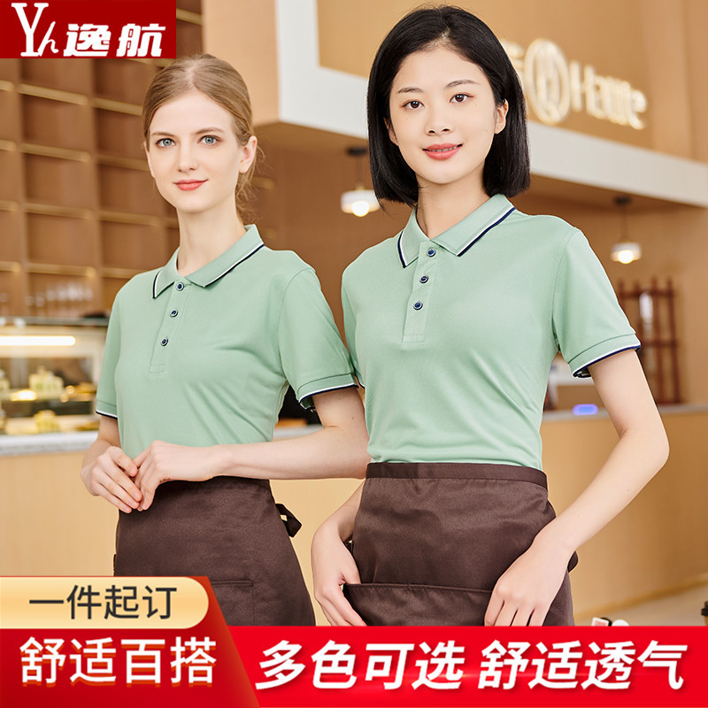 Restoran pelayan pakaian kerja T-shirt lapel lengan pendek katering susu teh Barbekyu Makanan Cepat pot toko pakaian kerja musim panas wanita
