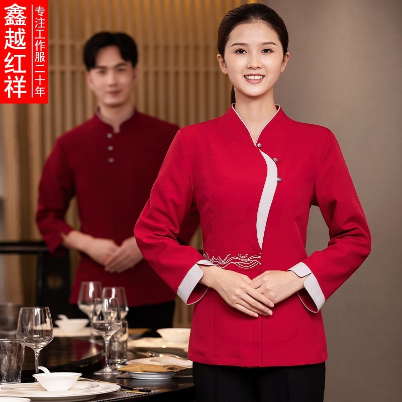 Baju kerja pelayan katering wanita, lengan panjang gaya Cina restoran hot pot restoran hotel meja depan staf pakaian musim gugur dan musim dingin