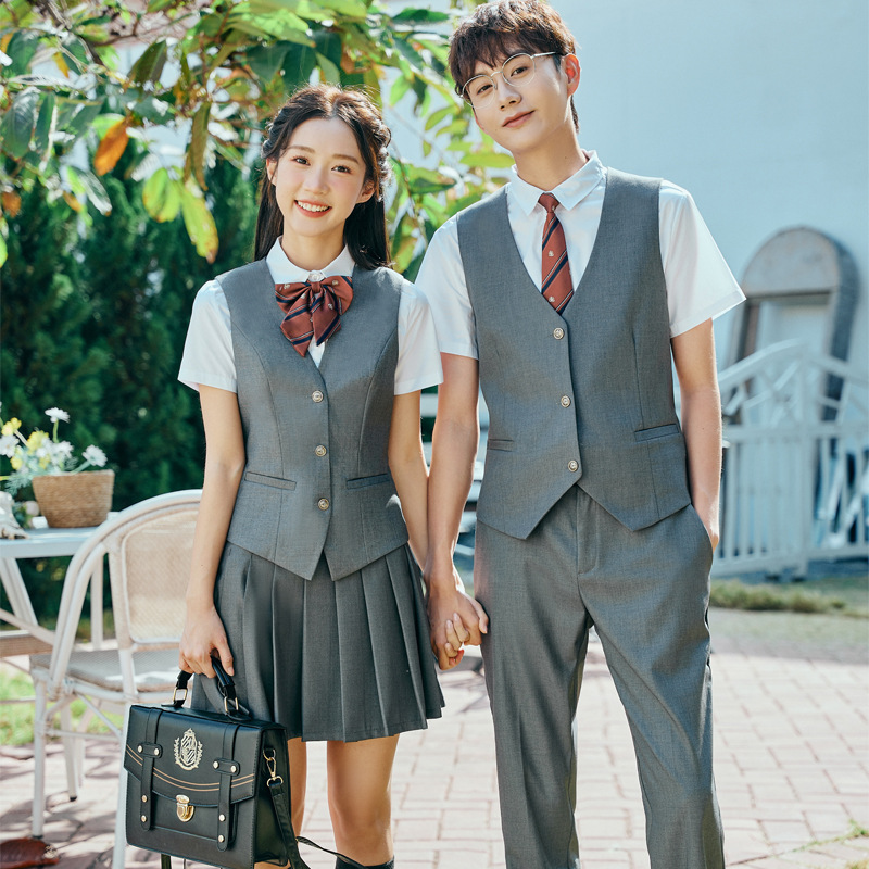 Setelan rompi gaya Korea untuk pria dan wanita, pakaian setelan siswa gaya kuliah JK seragam profesional temperamen taman kanak-kanak Guru pelayan