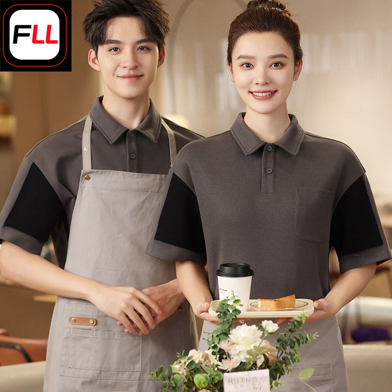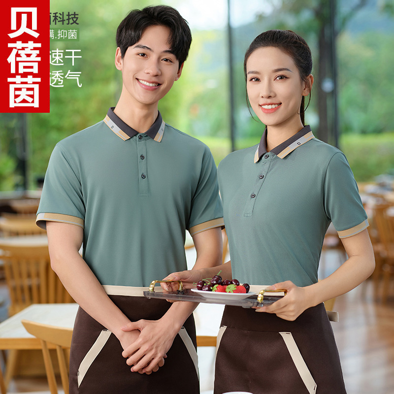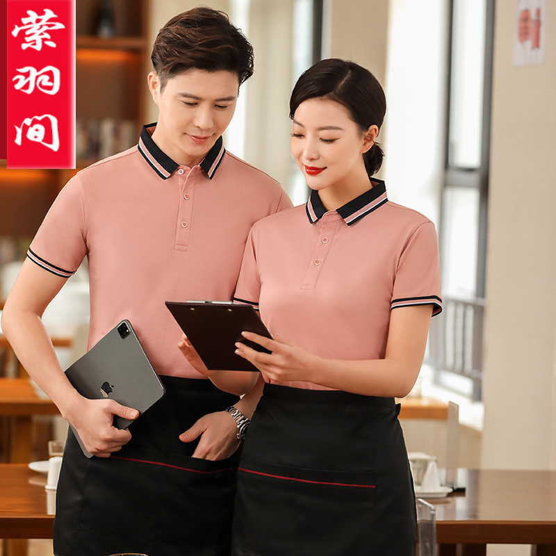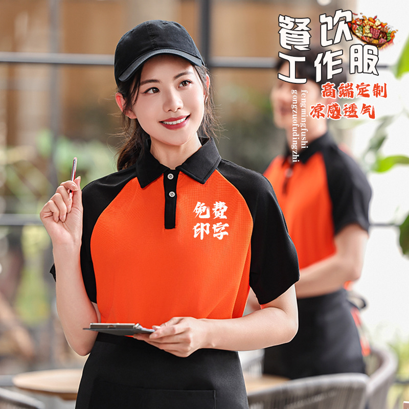 Pakaian Kerja Pelayan Restoran Hot Pot Lengan Pendek Katering Barbekyu Teh Susu Makanan Cepat Saji Pakaian Kerja Hotel Warna Kombinasi Kaos Cetak