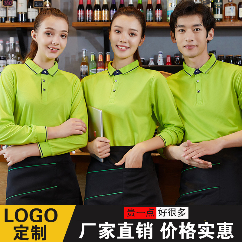 Baju kerja pelayan Supermarket lengan panjang, baju kerja restoran katering pot panas Restoran Makanan Cepat restoran teh susu toko musim gugur dan musim dingin