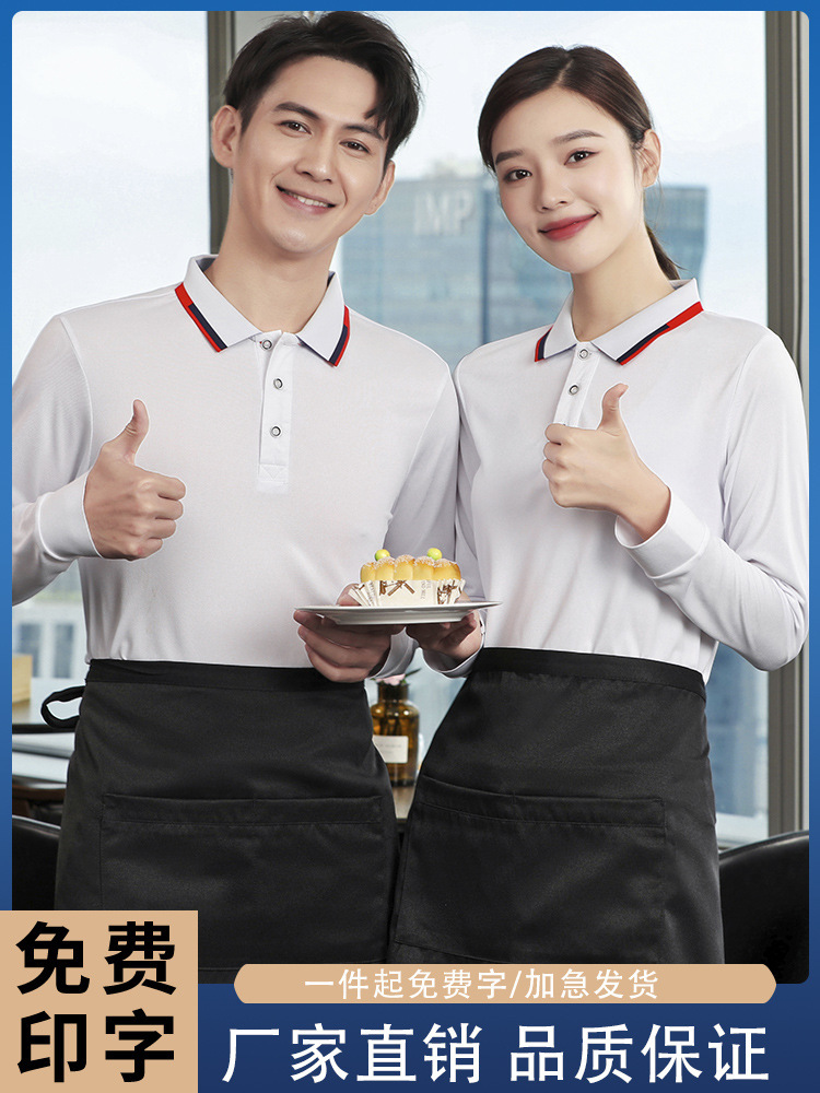 Pakaian kerja pelayan restoran Barat modis kelas atas T-shirt lengan panjang pakaian kerja pria untuk toko kopi katering pakaian kerja pria musim semi dan musim gugur