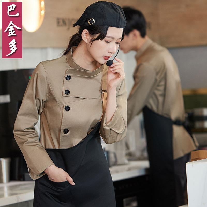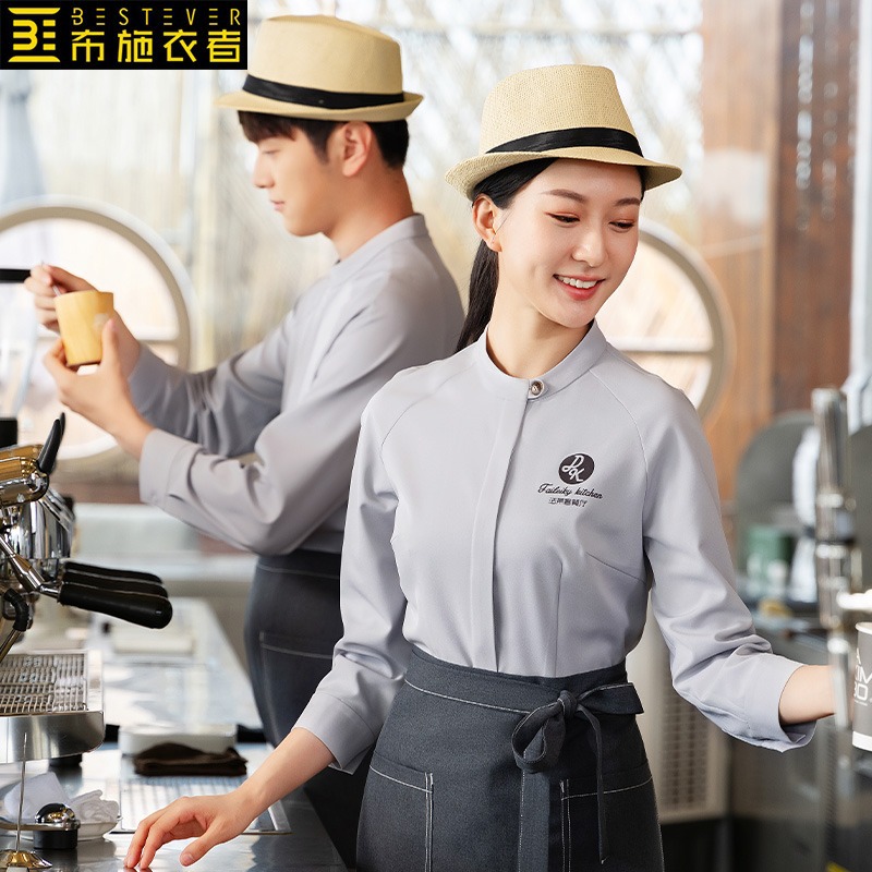 Baju kerja pelayan restoran Barat kue, baju kerja Pelayan musim gugur dan musim dingin, baju lengan panjang, katering kopi, teh susu, baju kerja toko