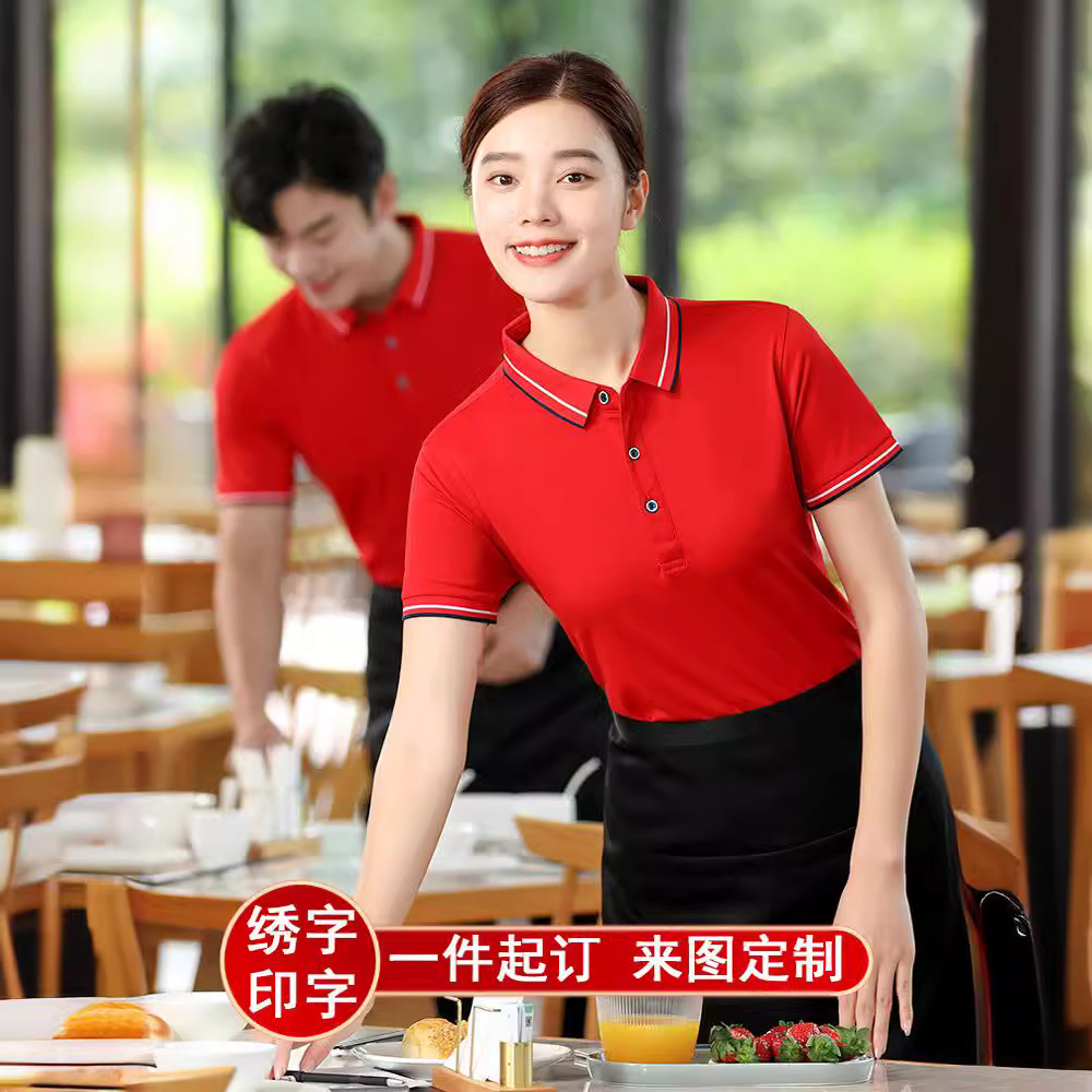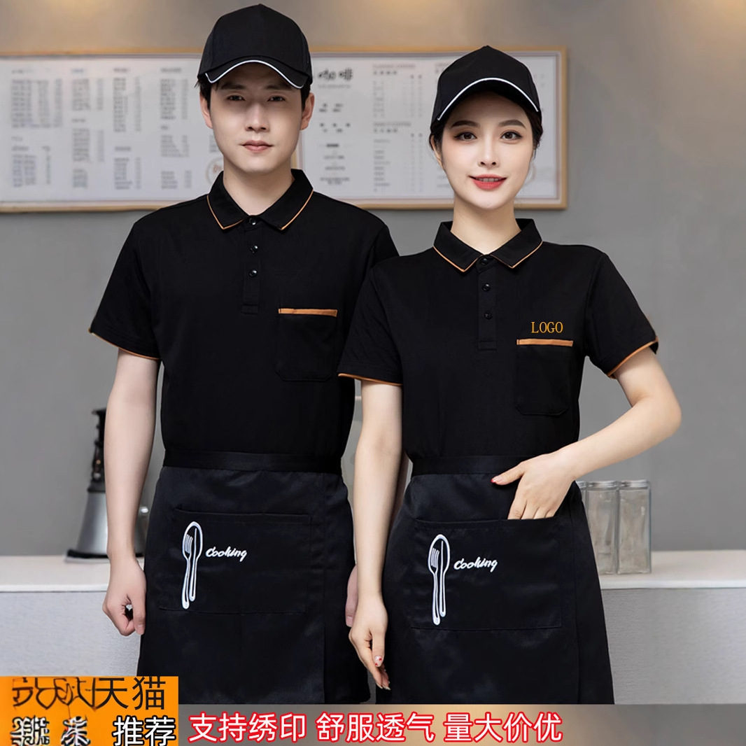 Pakaian Kerja Pelayan Hotel Kustom T-Shirt Wanita Katering Musim Panas Kopi Restoran Barat Hot Pot Teh Susu Toko Lengan Pendek Pria