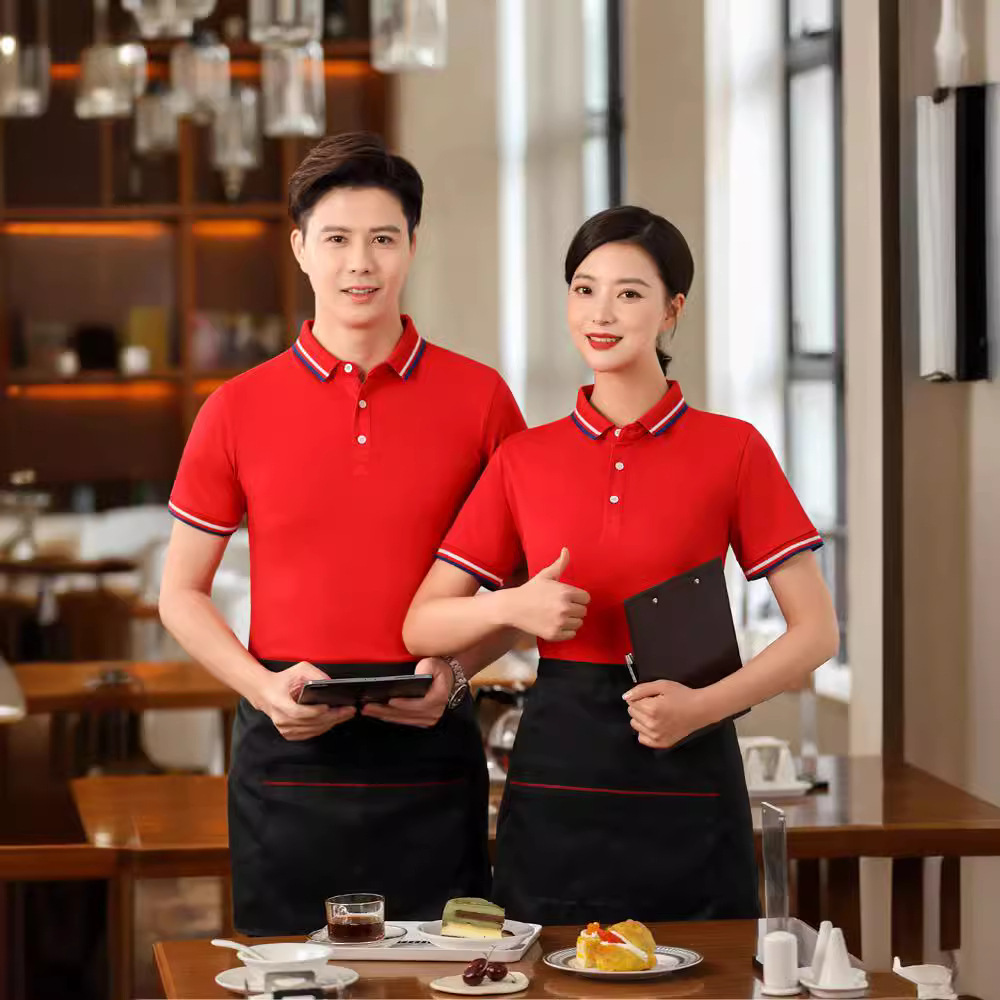 Pakaian Kerja Pelayan Makan Musim Panas T-shirt Lengan Pendek Pakaian Kerja Kustom Restoran Makanan Cepat Saji Hotel Restoran Hot Pot Pakaian Kerja Dicetak Logo